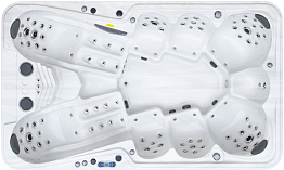 В бассейне имеется 72 водные форсунки и 8 форсунок, через которые подаётся воздух. Их совместное использование позволяет улучшить качество гидромассажа. Для сидячих мест форсунки установлены таким образом, чтобы тщательно прорабатывать шею, плечи, лопатки и поясницу, снимая напряжение в этих наиболее проблемных зонах. Боковые форсунки оказывают воздействие на бедра и ягодицы, что обеспечивает ощутимой антицеллюлитный эффект. Каждый пользователь может самостоятельно регулировать мощность струй, а мягкие выдвижные подголовники позволяют полностью расслабиться во время процедур.